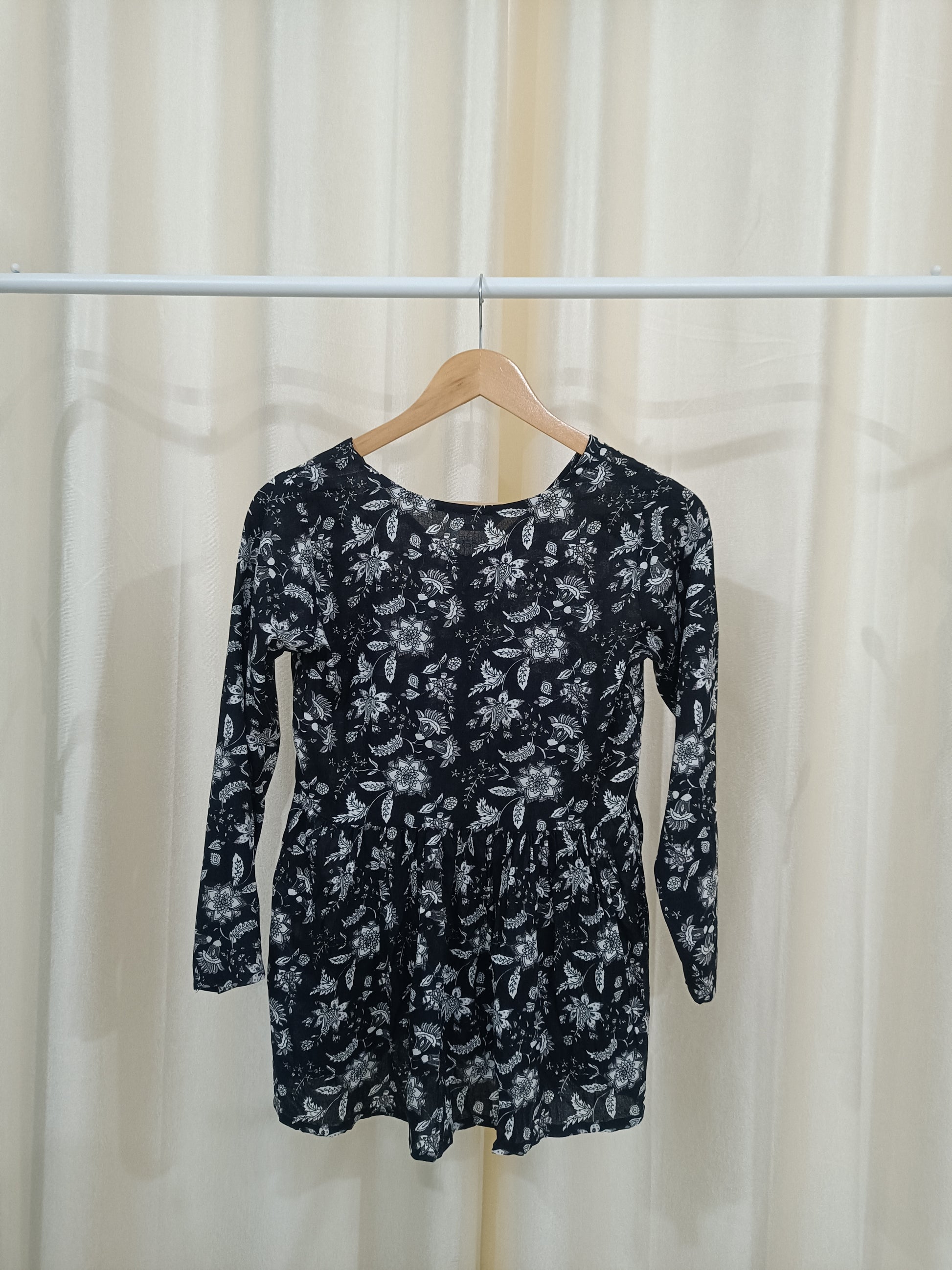 Black Flowers Flared Short Kurti - NYRA